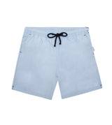 Light blue swim shorts for kids with elasticated drawstring waist. Come with two side pockets and a zip-fastening back pocket. All our products are designed and handmade in Italy.