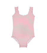 The LIA swimsuit is delicately embellished with a ruffled selvage and a deep back. Made out of a pink striped seersucker fabric, a material facilitating heat dissipation and air circulation. All our products are designed and handmade in Italy.