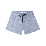 Blue swim shorts with white “Sea Shell” print and elasticated drawstring waist. They’ve got two side pockets, a zip back pocket and a locker loop inside. So you can hang them up to dry after a swim in the pool. The shorts are made from quick-drying shell and lined with mesh for breathable support whether you're in or out of the water. They fold down small enough to fit in your hand luggage.