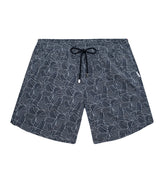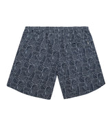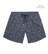 Dark blue swim shorts with white yacht rope print and elasticated drawstring waist. They’ve got two side pockets, a zip back pocket and a locker loop inside. So you can hang them up to dry after a swim in the pool. The shorts are made from quick-drying shell and lined with mesh for breathable support whether you're in or out of the water. They fold down small enough to fit in your hand luggage.