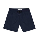 Swim shorts with elasticated drawstring waist in dark blue. They’ve got two side pockets, a zip back pocket and a locker loop inside. So you can hang them up to dry after a swim in the pool. The shorts are made from quick-drying shell and lined with mesh for breathable support whether you're in or out of the water. They fold down small enough to fit in your hand luggage.