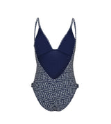 Classic swimsuit with stay-stitching in the front and removable pads, deep-rooted back, silver side buckles and beige Stone print. All our products are designed and handmade in Italy.