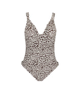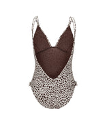 Classic swimsuit with stay-stitching in the front and removable pads, deep-rooted back, silver side buckles and brown Animal print. All our products are designed and handmade in Italy.