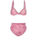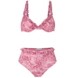 High waist 2-piece bikini with ruffles and wired top.