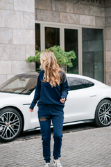The Trackpants for her in navy blue are made to relax and enjoy the time at home.